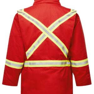 - Lowered X striping on back to allow more room for company logo or hooded undergarment